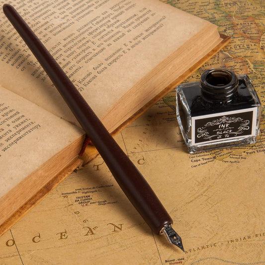 Hethrone Wooden Dip Pen Calligraphy Set For Beginners With 11 Nibs & Black Ink