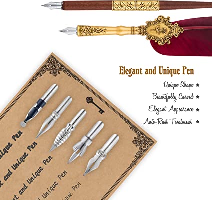 Hethrone Feather Pen Fountain Dip Pen and Ink Set Gift Calligraphy Pen Set For Beginners Writing Quill Pen