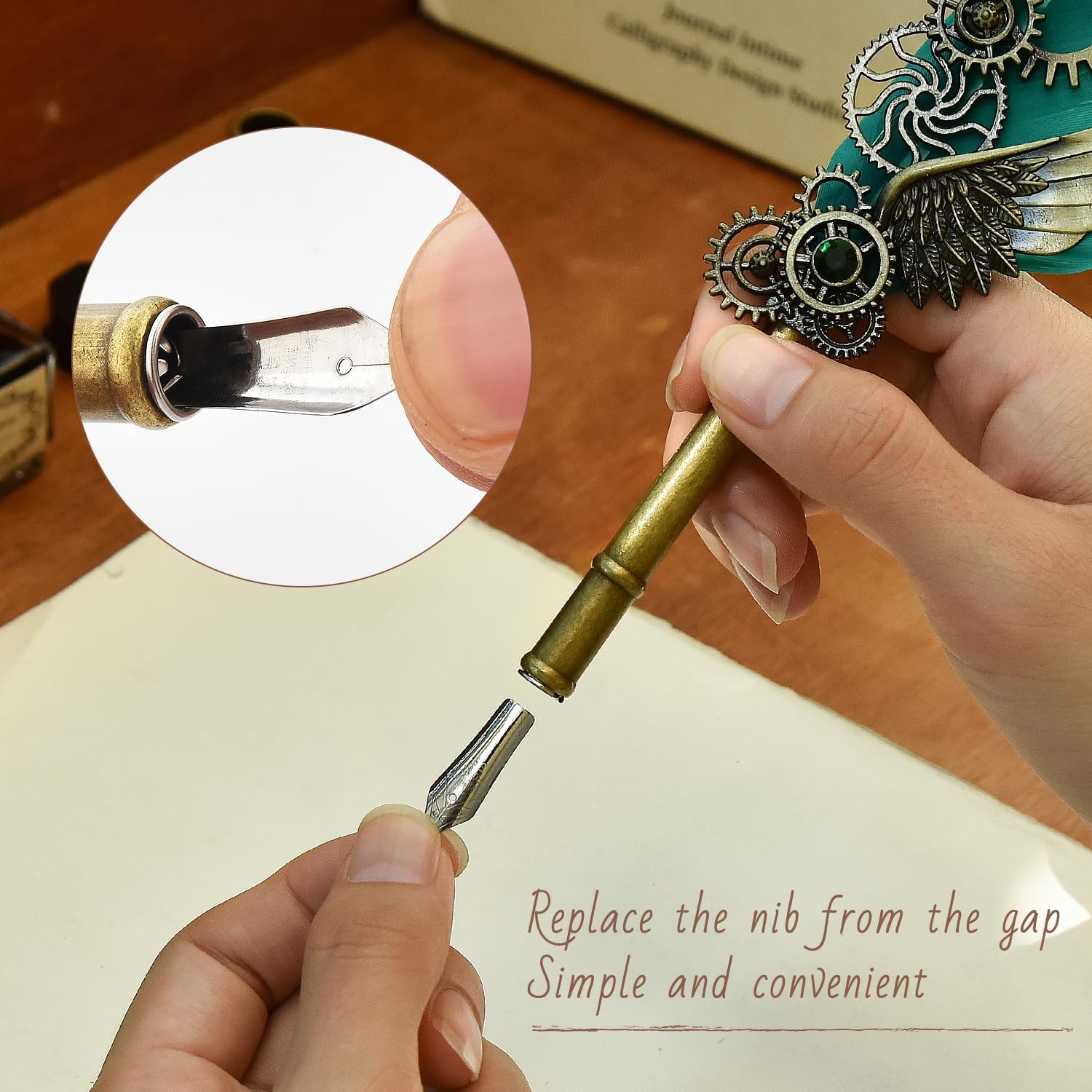 Hethrone Calligraphy Pens - Caligraphy Pens for Writing Feather Pen Quill Pen and Ink Set with Black Ink 10 Replaceable Nibs Gift Set (Green)