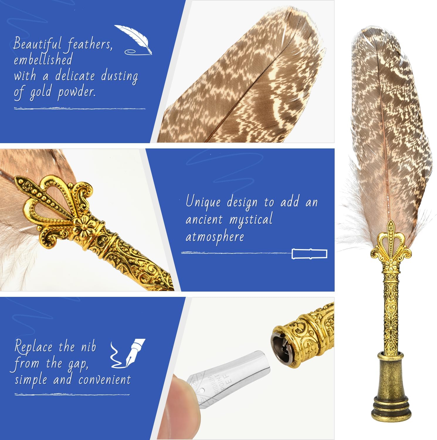 - Quality Materials - all of this quill pen set are choosing premium material, so you can use it with confidence. The copper pen body which can prevent rust and wear, the alloy feathers, resin fire wax, and non-toxic ink.